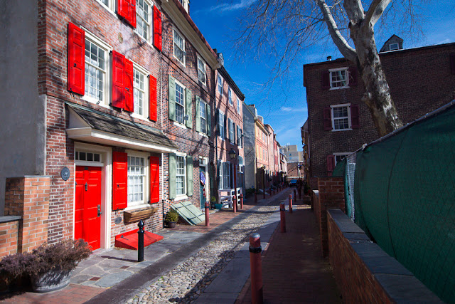 Elfreth Alley is this country's oldest continuously inhabited neighborhood and is just down the street from the Betsy Ross house. This little alley was designated as a National Historical Landmark in 1966. I was dying to see what the inside of one of these little townhouses looked like, but the house museum was closed for the winter so we just walked up and down the street enjoying the cuteness and imagining how I might decorate a little house like that if I lived there. The entire street was all so cute! It reminded me of London or an American version of Rothenburg ob der Tauber.